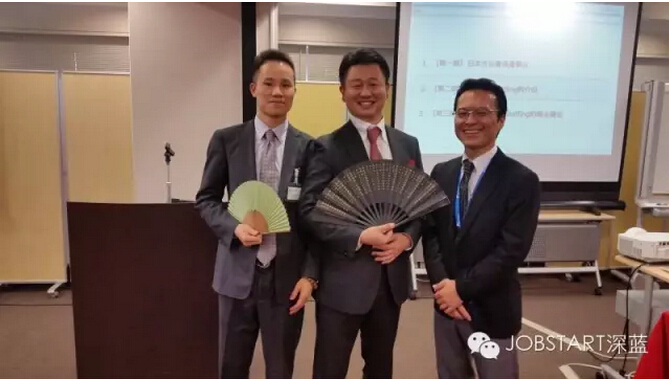 【圖片說(shuō)明:圖為杰博人力資源有限公司總經(jīng)理張林先生(左)向Recruit集團(tuán)所屬研究發(fā)展與派遣公司社長(zhǎng)松原伸明先生(中)贈(zèng)送從杭州精選之絲綢扇,寓意人力資源是一項(xiàng)有意義的事業(yè)】